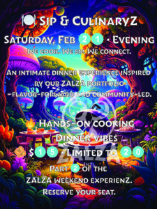 Sip & CulinaryZ is an intimate, community-centered dining experience where guests gather to cook, sip, and connect. Inspired by ZALZA’s portfolio of offerings, this evening blends hands-on preparation, shared conversation, and elevated flavors.